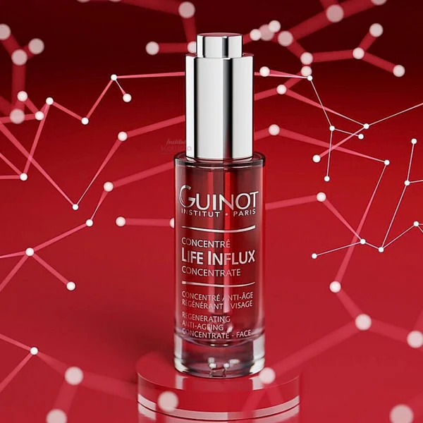 A Guinot Concentre Life Influx egy high-tech koncentrátum a sejtdegeneráció megelőzésére. Ez a koncentrált szérum alapjaiban fiatalítja meg a bőrt. Hatására a fáradtság jelei eltűnnek, az arc teltebb, simább, tökéletesen revitalizáltnak tűnik, és egészségesen ragyog. Gazdag hatóanyag-tartalma révén a kötőszövet megújul, feszesebb és tömörebb lesz, a ráncok kisimulnak, az öregedés folyamata lelassul.