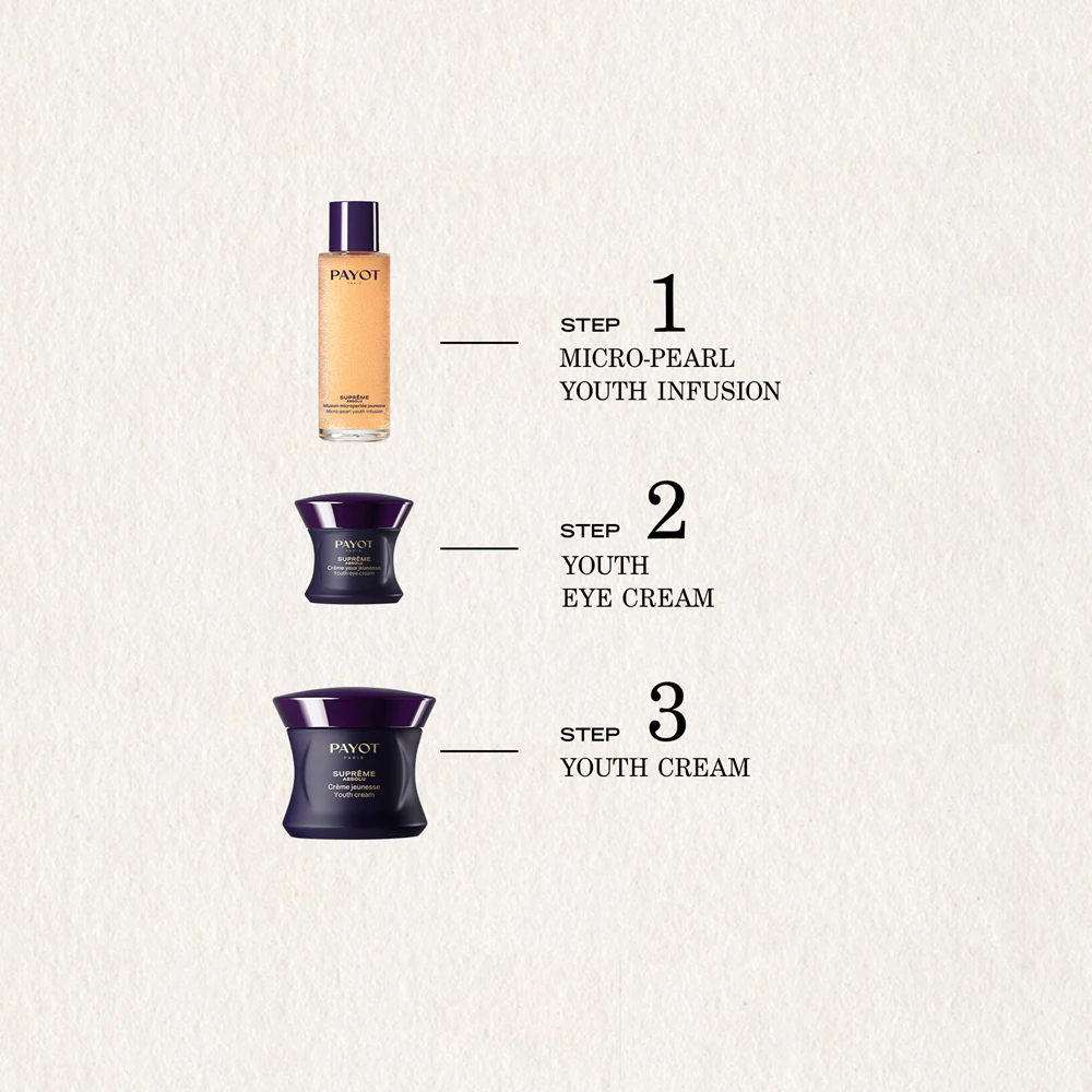 Fő összetevők és hatásuk – A bőr fiatalságának őrzői: A krém a Payot „Youth Process” komplexére épül, amely a legnemesebb összetevőket ötvözi: