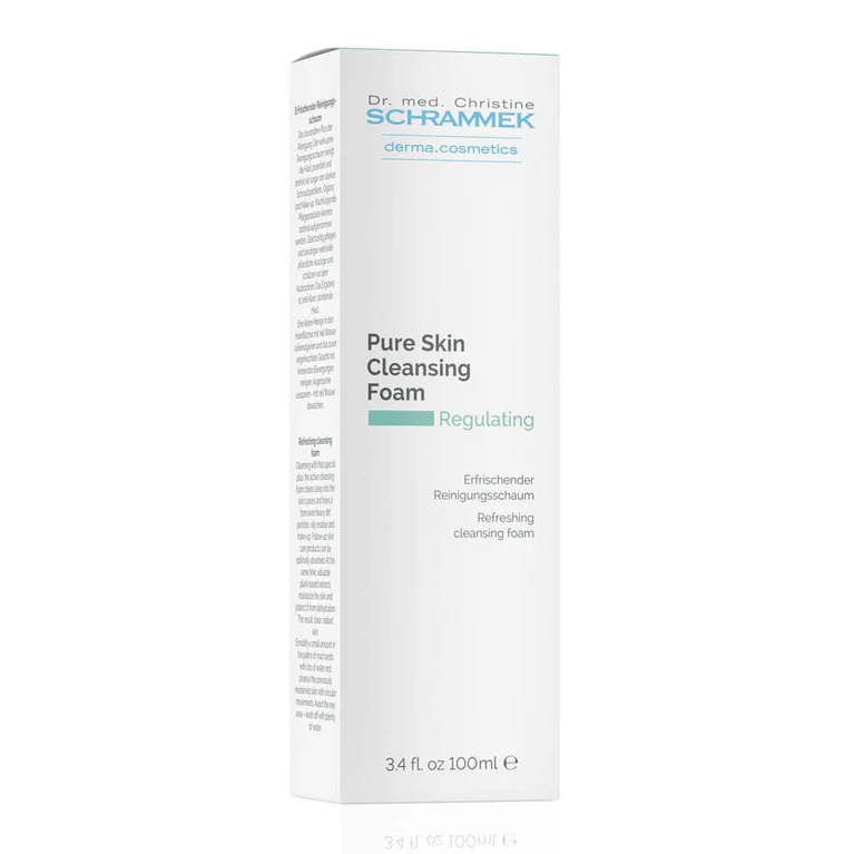 A Dr Schrammek Pure Skin Cleansing Foam egy lágy, légiesen könnyed tisztító hab, amely kíméletesen, mégis mélyrehatóan távolítja el a bőrről a mindennapi szennyeződéseket, a sminkmaradványokat és a felesleges faggyút. Ez a szappanmentes formula kifejezetten úgy lett kifejlesztve, hogy tisztítás közben is tiszteletben tartsa a bőr természetes védőrétegét és pH-egyensúlyát. Frissítő textúrája tisztább, mattabb és simább bőrképet eredményez, miközben felkészíti az arcot a következő ápolási lépésekre.