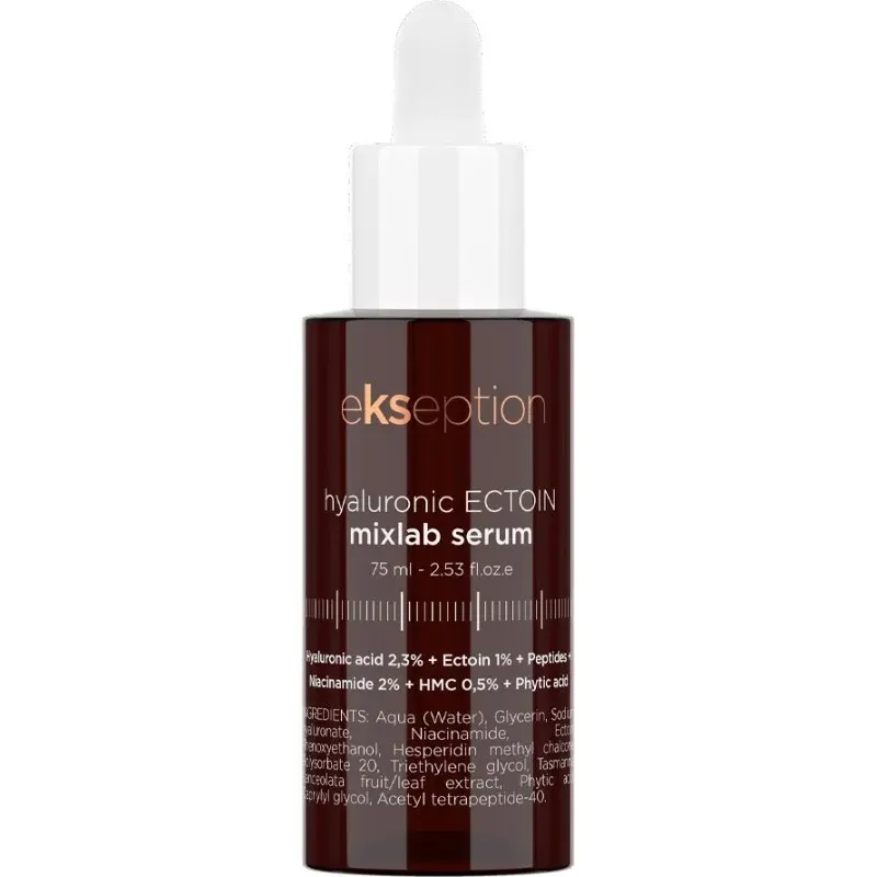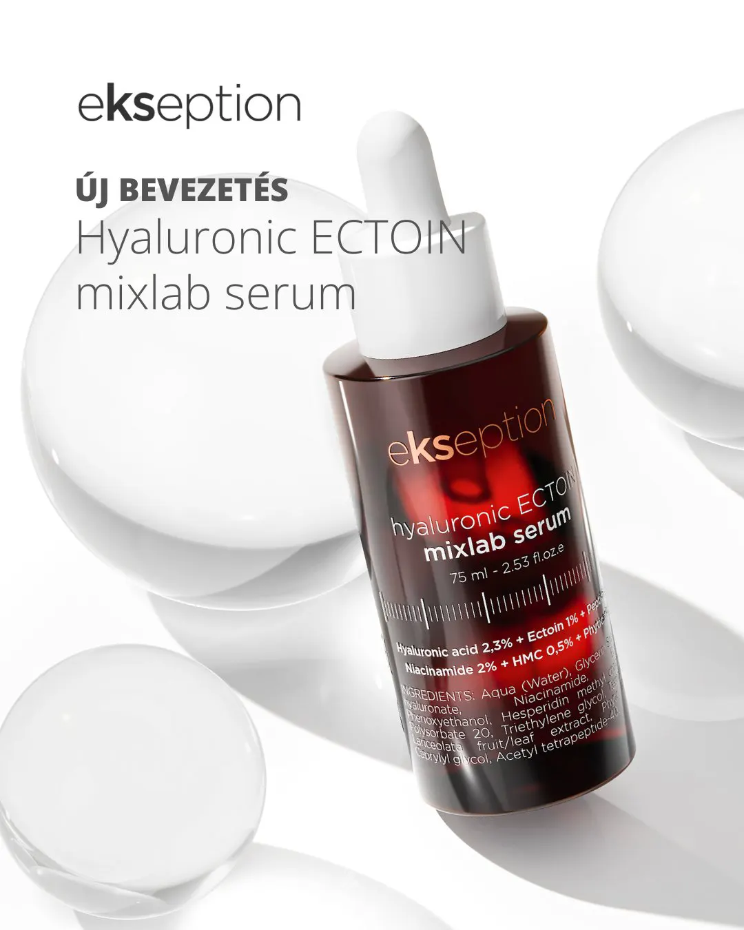Az eKseption Hyaluronic Ectoin Mixlab szérum egy professzionális, rendkívül koncentrált nyugtató szérum, amelyet kifejezetten az érzékeny, reaktív és kipirosodásra hajlamos bőr igényeire fejlesztettek ki. Ez a különleges formula egyfajta „nedvességmegőrző pajzsként” működik: nemcsak mélyen hidratálja a bőrt, hanem megerősíti annak természetes védőrétegét (barrier), és azonnal csillapítja a gyulladásos folyamatokat. Könnyű, gyorsan felszívódó textúrája segít egységesíteni az arcbőrt és komfortérzetet nyújt az irritált területeken.