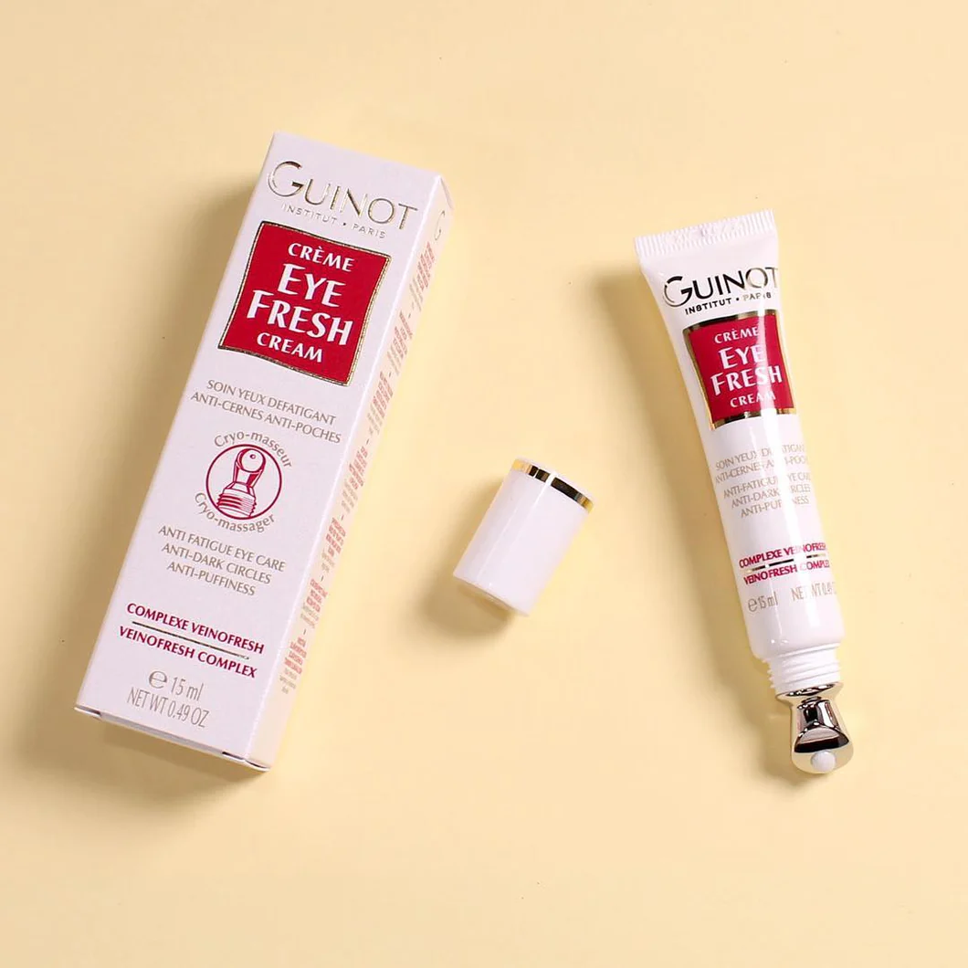 A Guinot Creme Eye Fresh élénkíti és revitalizálja a fáradt szemeket, gyorsítja a mikrokeringést, csökkenti a sötét karikákat és duzzanatokat. A fejrész különleges kialakítása révén a krém könnyedén bemasszírozható a szemkörnyéki bőrbe, gyorsan és nyom nélkül beszívódik a bőrbe. Figyelem! Nem ránctalanító hatású!