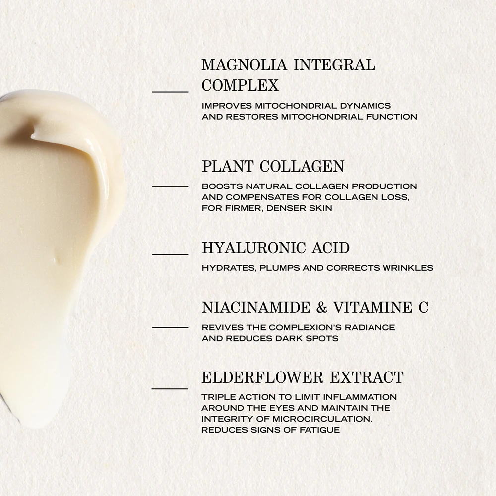 - C-vitamin származék: Egységesíti a bőrtónust, ragyogást ad a tekintetnek és segít halványítani a pigmentációs foltokat.