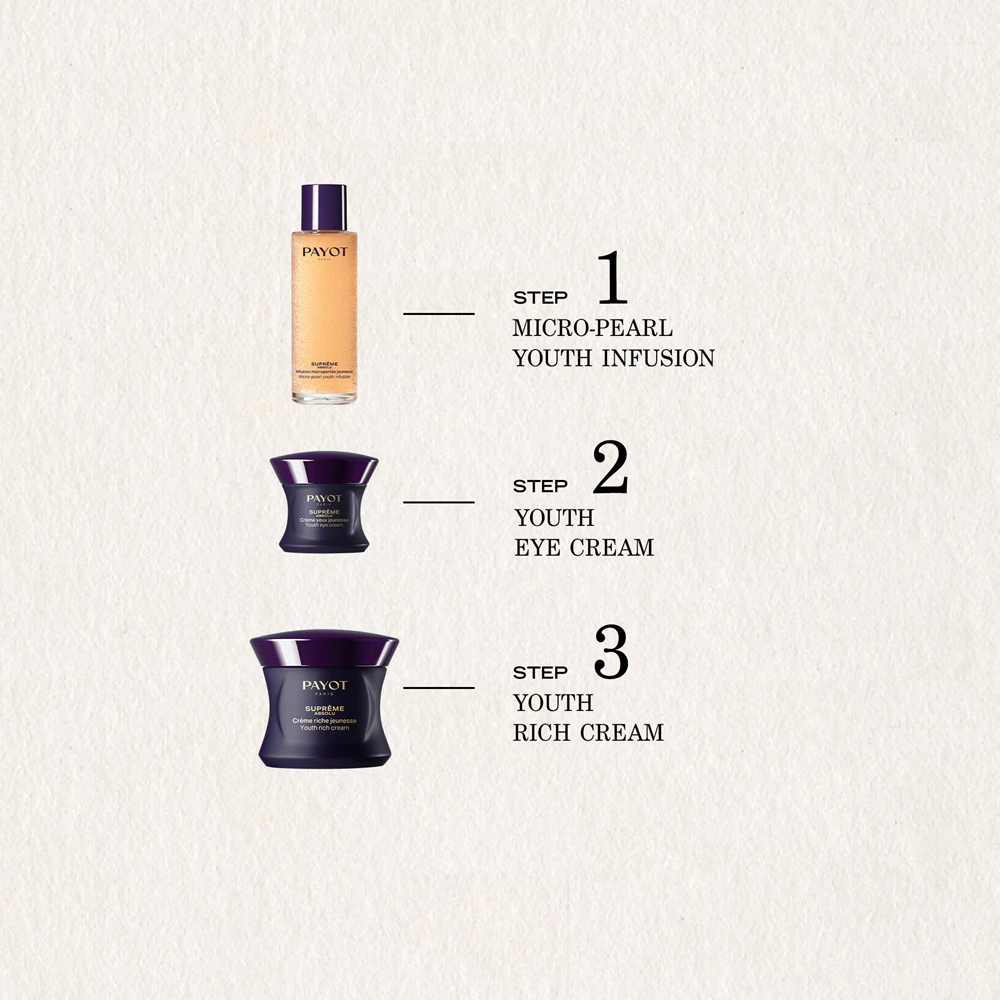 A Payot Supreme Absolu a francia márka egyik legexkluzívabb fiatalító szemkörnyékápolója, amely a „Suprême Jeunesse” termékcsalád tagja. Ezt a selymes, lágy állagú krémet kifejezetten az érett bőr igényeire fejlesztették ki, hogy átfogó megoldást nyújtson az öregedés minden látható jelére a szem körül. Célzottan kezeli a ráncokat, a megereszkedett szemhéjat, a fáradtság jeleit, valamint a sötét karikákat és duzzanatokat. Illatanyag-mentes formulája révén a legérzékenyebb szemek számára is maximális komfortot biztosít.