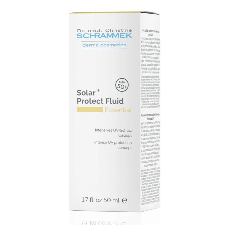 A Dr Schrammek Solar Protect Fluid SPF 50 + egy rendkívül magas fényvédelmet biztosító, ultrakönnyű állagú napvédő fluid krém. Ezt a modern készítményt kifejezetten úgy fejlesztették ki, hogy maximális védelmet nyújtson az UVA és UVB sugarak ellen anélkül, hogy elnehezítené a bőrt vagy zsíros érzetet hagyna maga után. Lágy, folyékony textúrája pillanatok alatt felszívódik, így minden bőrtípus számára ideális – beleértve a kombinált, olajos vagy érzékeny bőrt is. Különösen ajánlott professzionális bőrújító kezelések (például hámlasztás) után, amikor a bőr fokozott védelmet igényel.