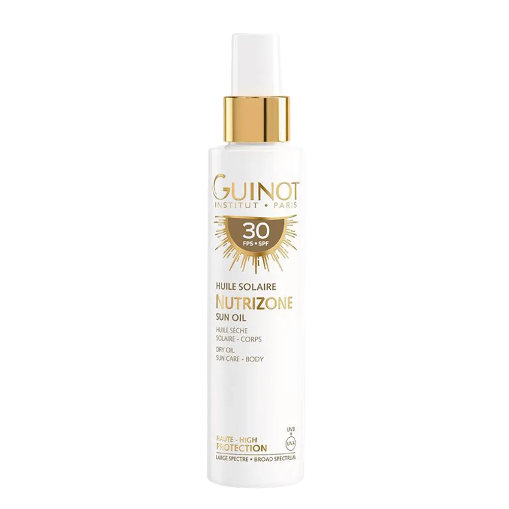 Ez egy kétfunkciós fényvédő permet: egyszerre nyújt magas szintű védelmet az UVA és UVB sugarak ellen, valamint regenerálja a bőr lipidrétegét. Míg a hagyományos naptejek gyakran csak a felszínen védenek, a Nutrizone olaj a Guinot anti-aging technológiáját alkalmazza, így segít megelőzni a napsugárzás okozta idő előtti bőröregedést (fotóaging).