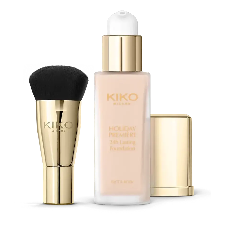 A KIKO Milano Holiday Premiere 24h Lasting Foundation egy ünnepi kiadás részeként megjelenő, könnyed, mégis tartós folyékony alapozó, amely akár 24 órás kopás- és átvitelálló hatást biztosít matt finishel. Bőrön használva simítja a bőrtónust, elfedi a kisebb hibákat, közepes vagy magas fedést nyújt, miközben nem nehezíti el az arcbőrt. A praktikus pumpás üvegcsében található termékhez egy applikátorszolgaló ecset is tartozik az egyszerű felvitelhez; mindemellett narancs-fahéjas illattal teszi különlegessé a használatot.