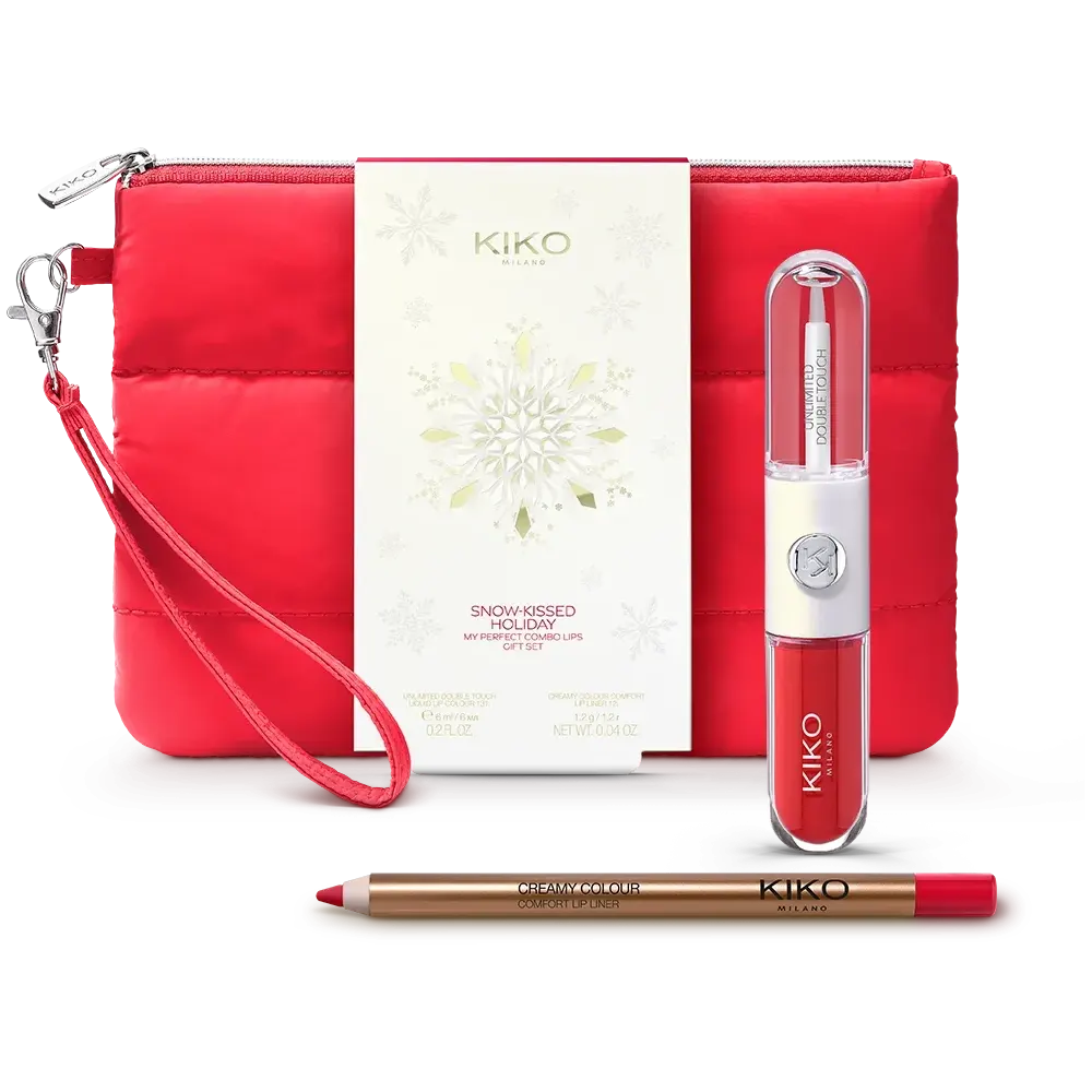 A KIKO Milano Snow-Kissed Holiday My Perfect Combo Lips Gift Set egy elegáns, ajkakra fókuszáló ajándékcsomag, amely két ikonikus KIKO Milano ajakterméket és egy praktikus piperetáskát tartalmaz. A szett célja, hogy egyetlen összeállításban biztosítsa a hosszan tartó, precíz és ápolt ajaksmink elkészítéséhez szükséges alapokat, legyen szó hétköznapi megjelenésről vagy ünnepi alkalomról.