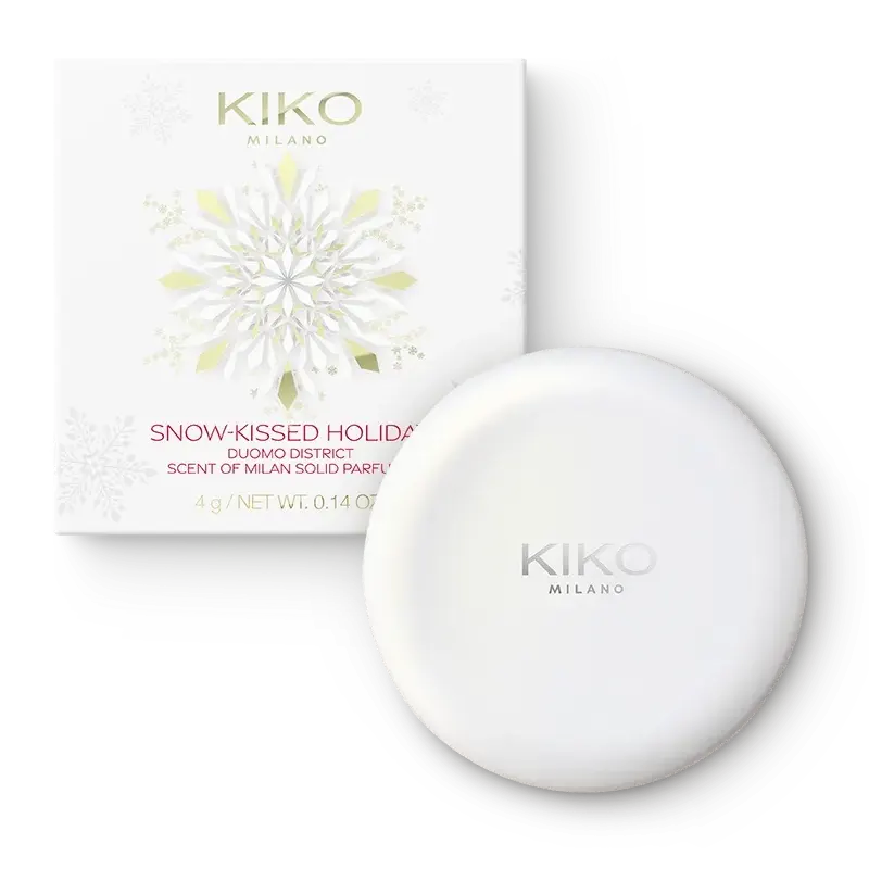 A Kiko Milano Snow-Kissed Holiday Solid Perfume egy limitált kiadású szilárd parfüm kollekció, amelyet ünnepi alkalmakra alkottak meg. Ezek a kifinomult, alkoholmentes illatok Milánó legikonikusabb negyedeinek (Duomo, Montenapoleone, Isola) stílusát, bohém és kozmopolita hangulatát idézik. A praktikus, kompakt tégelyben kapható formula lehetővé teszi, hogy bárhová magaddal vidd kedvenc illatodat, és diszkréten, precízen vidd fel a bőrre.