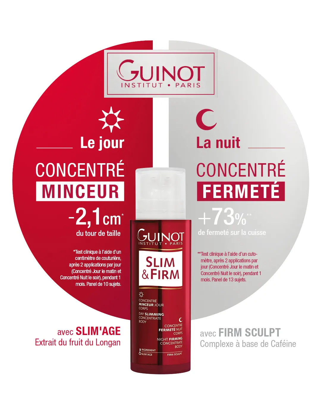 A Guinot Slim & Firm Double Concentrate a professzionális testkezelések csúcstechnológiáját hozza el az otthonodba. Ez az intenzív hatású szérum-koncentrátum kettős küldetést teljesít: egyszerre veszi fel a harcot a makacs zsírpárnákkal és a bőr megereszkedésével. Ideális választás azoknak, akik látványosabb kontúrokat, simább bőrfelszínt és feszesebb alakot szeretnének elérni.