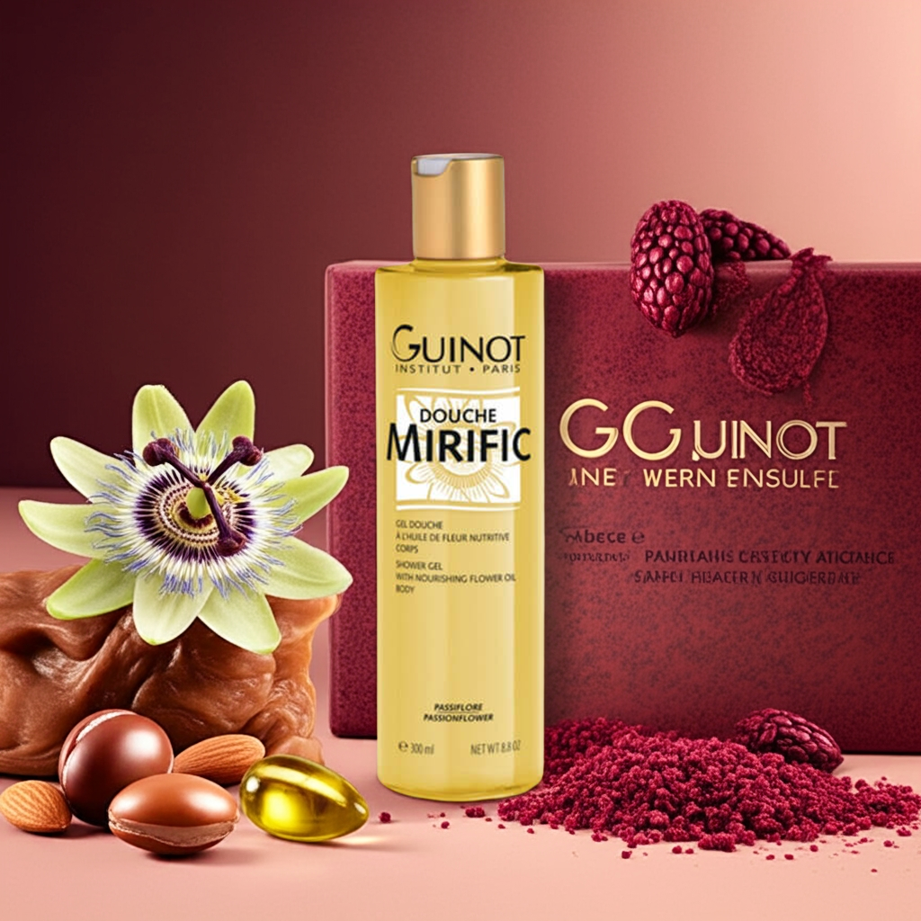 A Guinot Douche Mirific egy prémium kategóriás tusfürdő, amely gyengéden tisztítja meg a bőrt miközben táplálja és hidratálja azt. A benne rejlő édesvadszőlő‑olaj (Passiflora incarnata) védi a bőrt a kiszáradástól, és javítja annak rugalmasságát, így használat után puha, bársonyos tapintású marad. Gyengéden tisztítja és passióvirág kivonattal táplálja bőrünket. Védi a kiszáradástól, segít megőrizni a bőr természetes egyensúlyát. Használatával bőrünk selymes tapintású és illatos lesz.